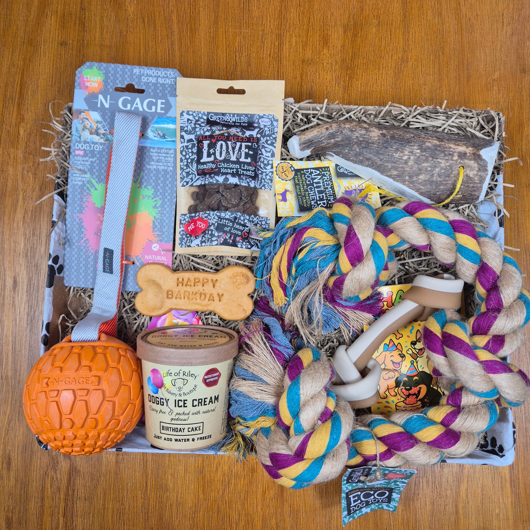 XXL dog birthday box with natural chews,